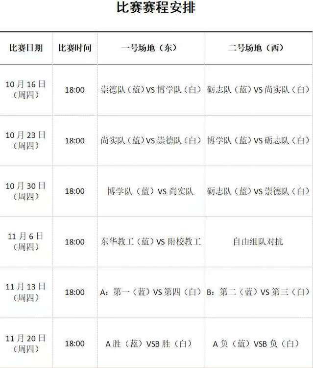 请各参赛队伍提前做好赛前准备,也欢迎全校教职工前往现场观赛,为心仪的队伍加油助威,共同感受篮球运动的魅力与东华教职工的活力!