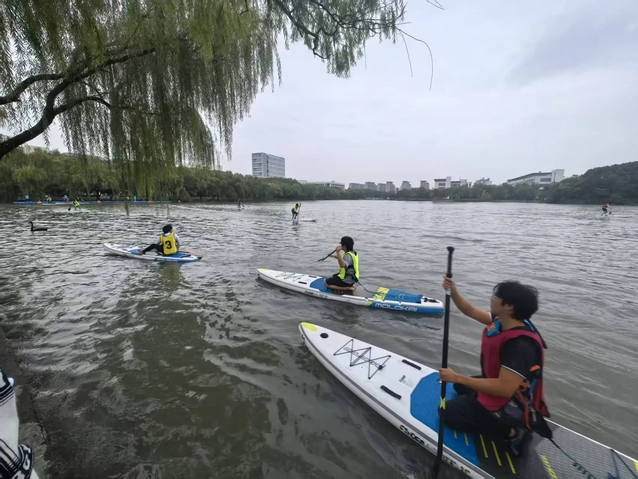 桨板运动兼具竞技性与趣味性,既考验体能与技巧,更培养平衡能力、协作精神,为青年学子强健体魄、涵养品格提供了新路径。在过去几年中,在上海市教委及上海市科技艺术教育中心的支持和指导下,桨板运动逐渐在上海高校中发展壮大,成为校园一道亮丽的风景线,也为推广水上运动和提高校园水域安全知识作出了积极贡献。