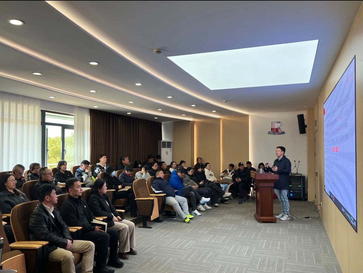 12月9日,体育部润奥盛体育报告厅座无虚席,体育部党总支、广富林街道机关第二党支部在此开展二十届四中全会精神联学活动。我校二十届四中全会精神宣讲团成员、马克思主义学院曾瑞明教授应邀做《扎实推进文化强国建设的行动指南——学习党的二十届四中全会精神专题交流》的辅导报告。体育部党总支书记高兰兰主持联学活动。