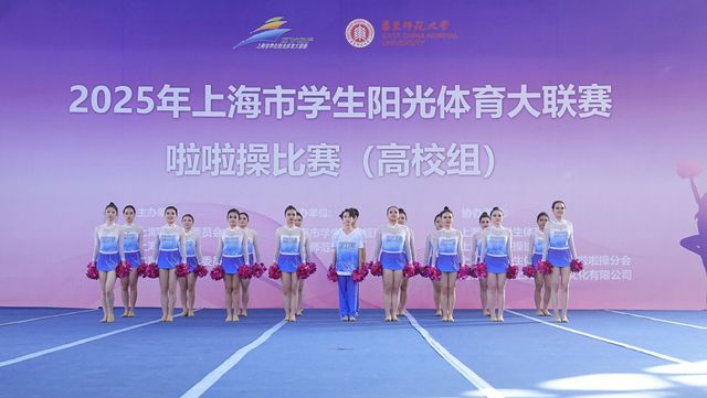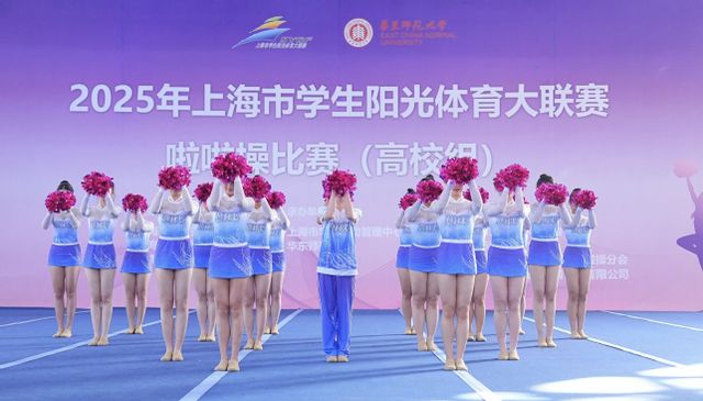 本次赛事由上海市学生阳光体育大联赛组委会主办,吸引了沪上多所高校的啦啦操队伍同台竞技。比赛中,东华大学啦啦操队队员们身着蓝白相间的赛服,手持玫红色花球,以整齐划一的动作、富有感染力的表情和默契的团队配合,将战歌表演的节奏与力量完美呈现。从队形变换到动作衔接,每一个细节都彰显着队员们日复一日的训练成果,也让现场评委和观众感受到了啦啦操运动的独特魅力。