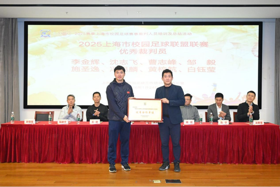 颁奖仪式中还为2025赛季上海市校园足球赛事裁判监督颁发了荣誉证书。