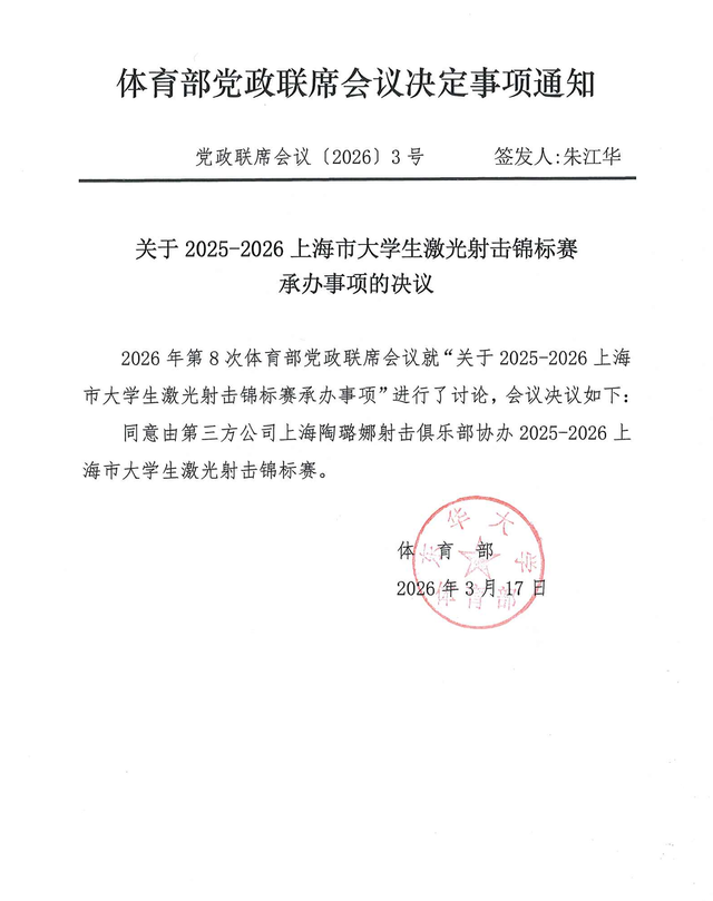 关于2025-2026上海市大学生激光射击锦标赛承办事项