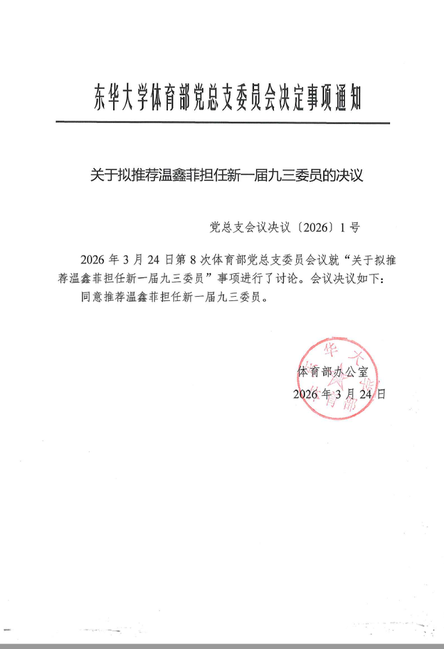 关于拟推荐温鑫菲担任新一届九三委员的决议